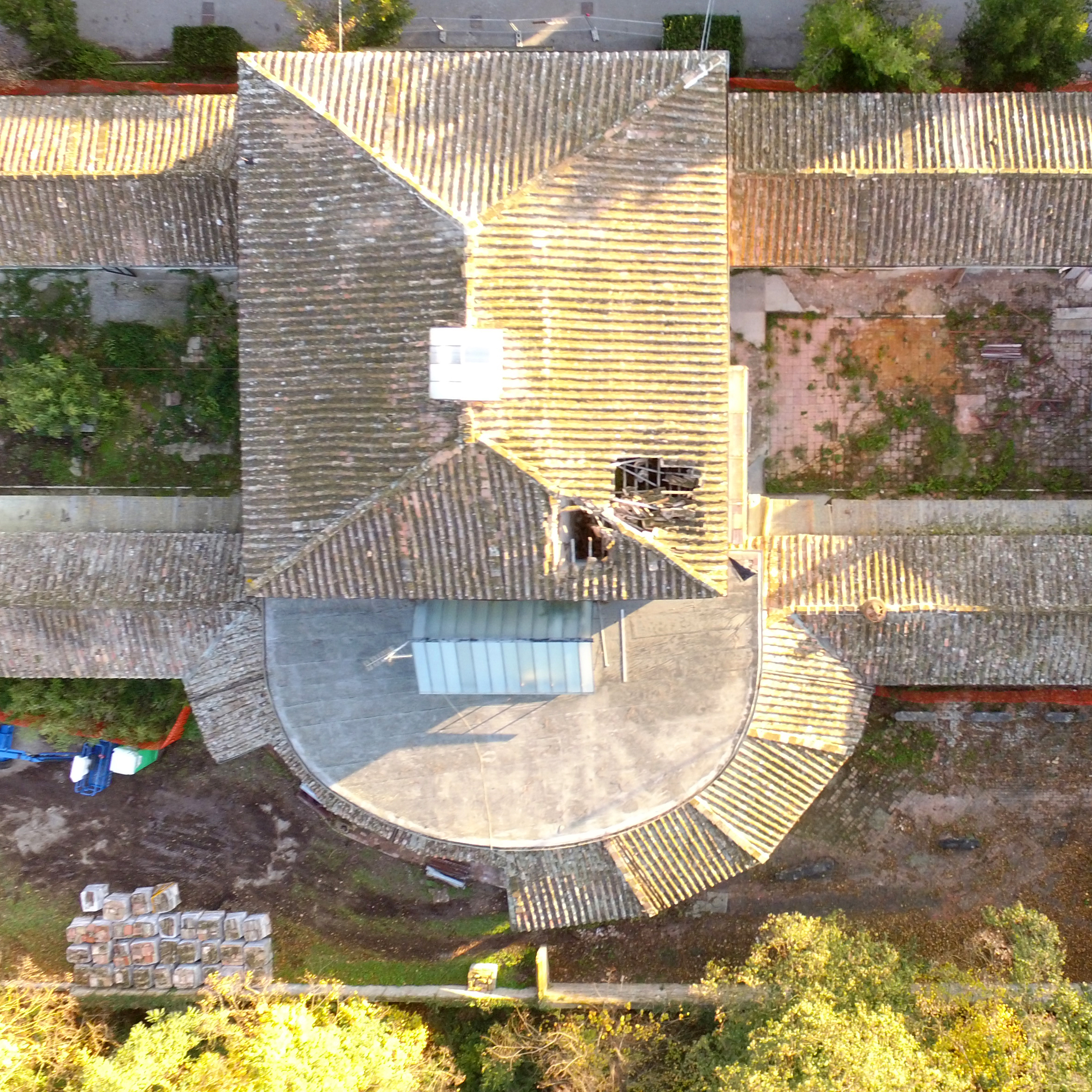 I lavori grazie anche alla buona stagione che c’è stata fino ad oggi sono andati avanti speditamente. Sono iniziati dalla parte che veniva definita “criminale” (a sinistra guardando l’ingresso) che era anche quella più disastrata ma stanno già interessando anche i tetti delle cellette nella parte di destra e proseguiranno fino al completo riassetto di tutte le coperture compreso il tetto del corpo centrale rialzato che riporta ancora danni ben visibili.